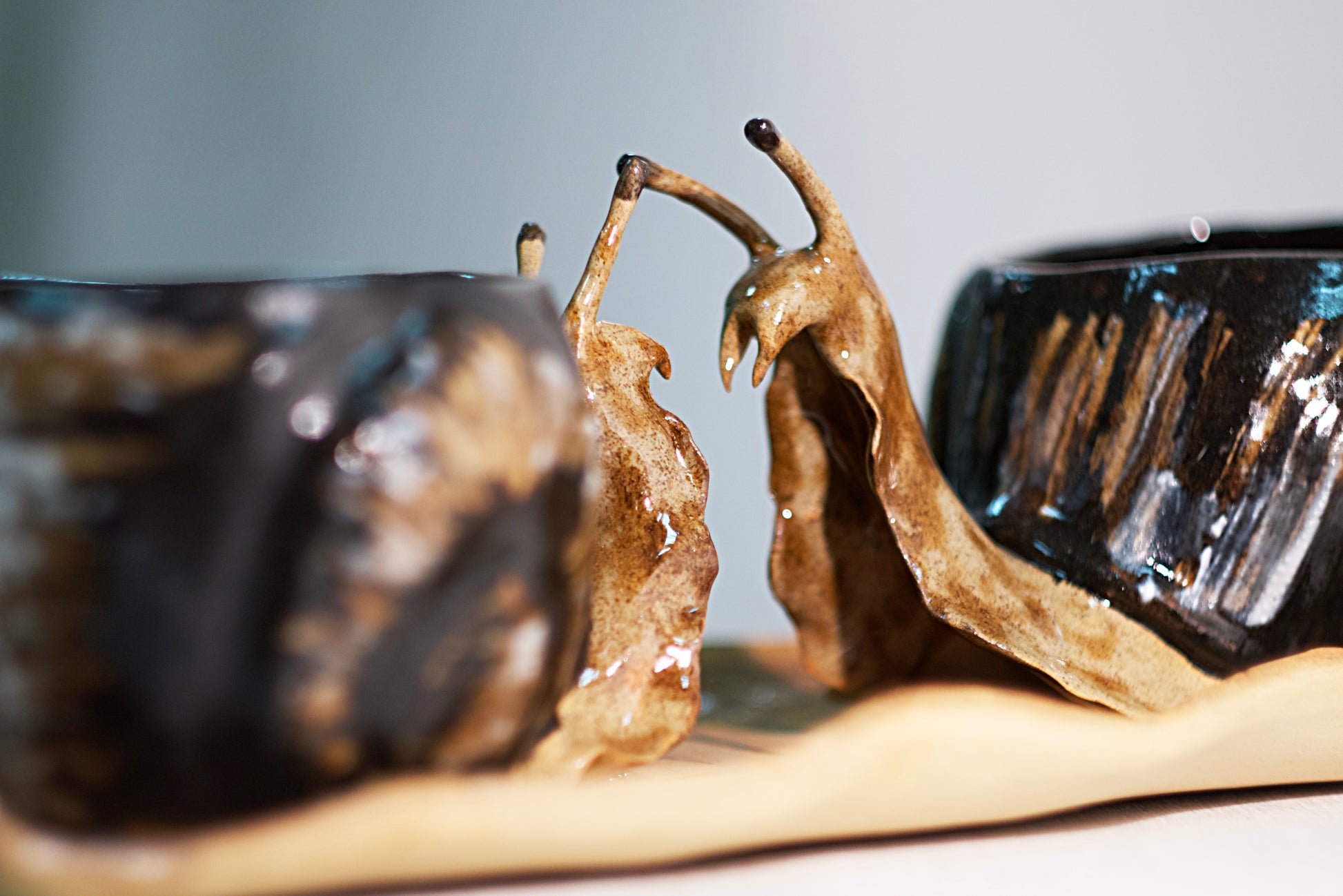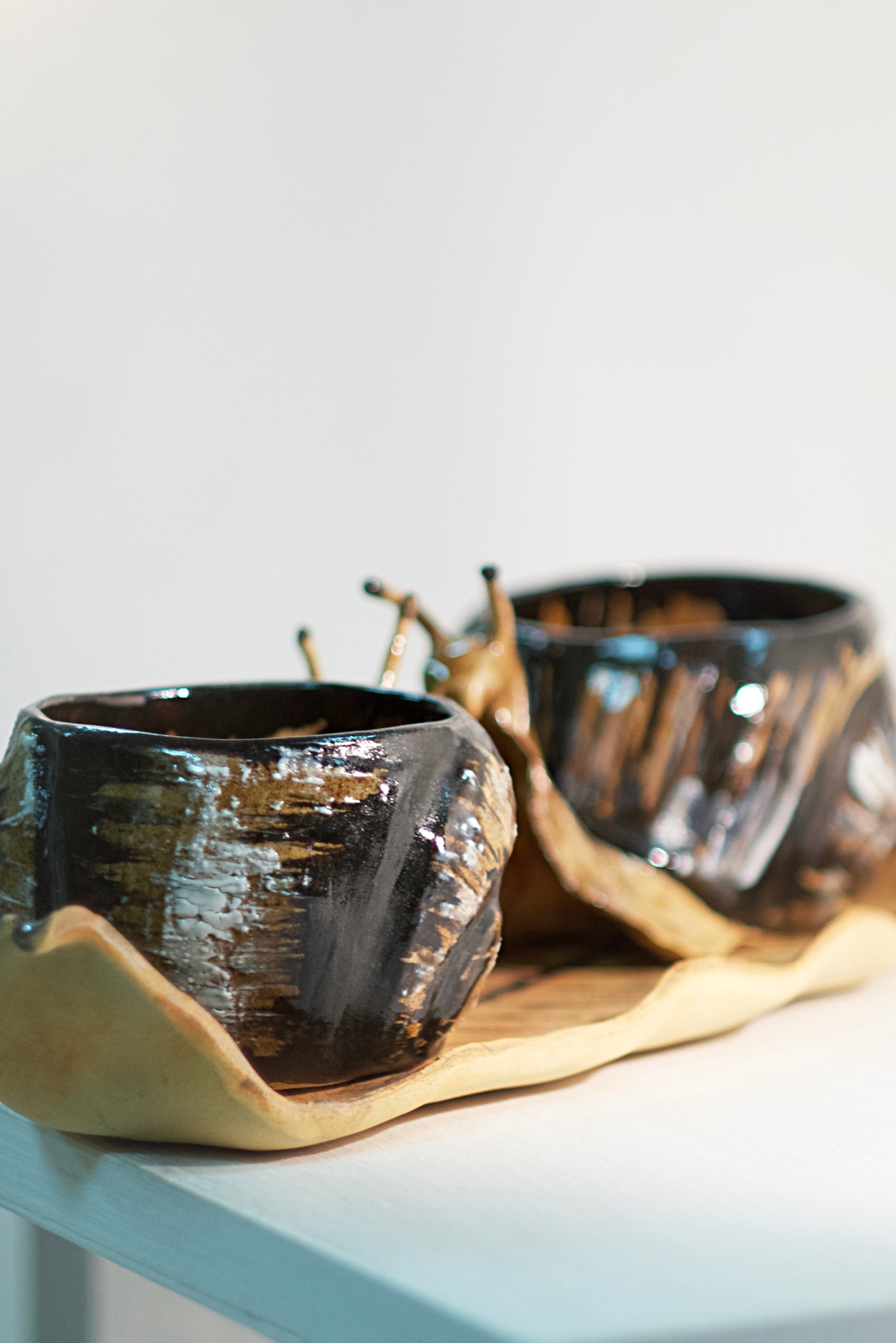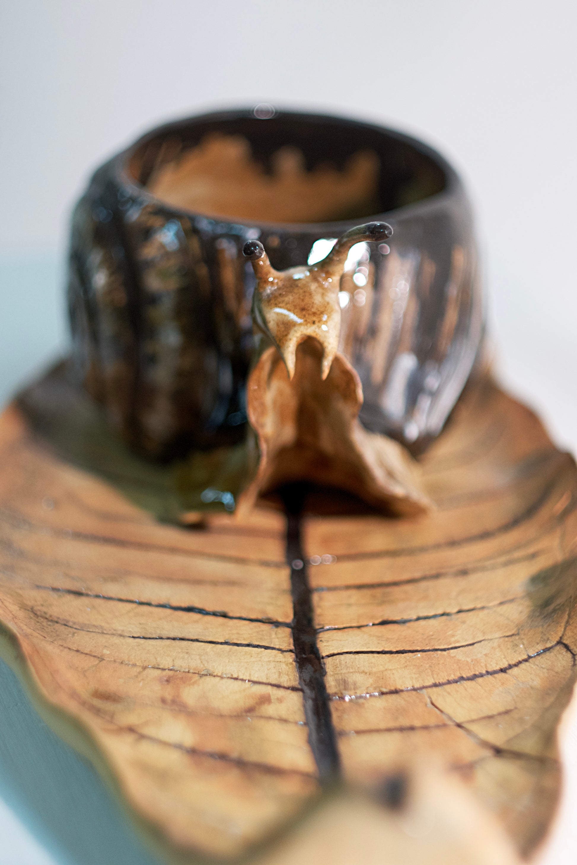 This piece is made of stoneware, covered with transparent glaze and ceramic ink.