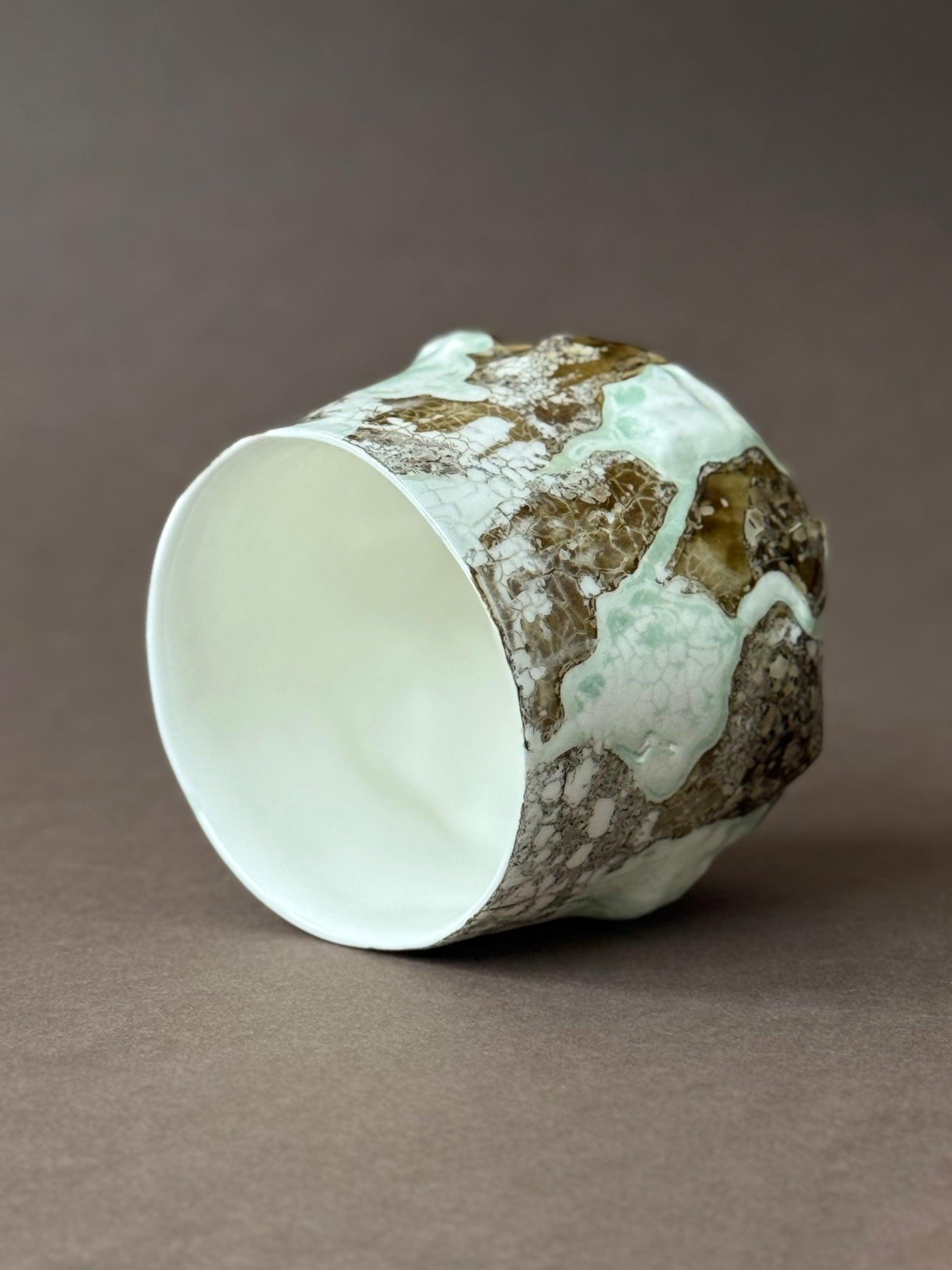 Made of Chinese bone china, covered with transparent glaze and a combination of luster varnishes. Intended for cold drinks.