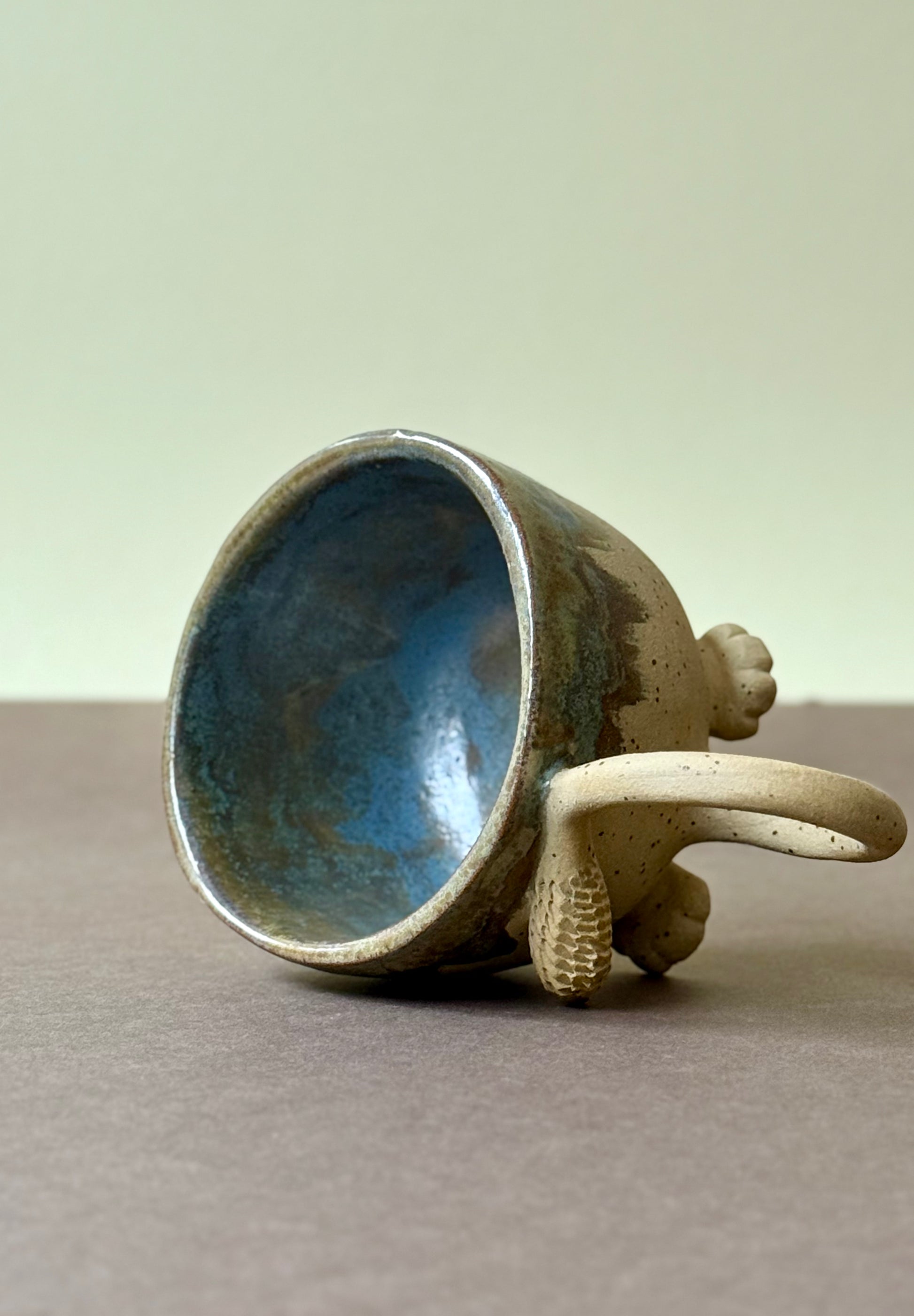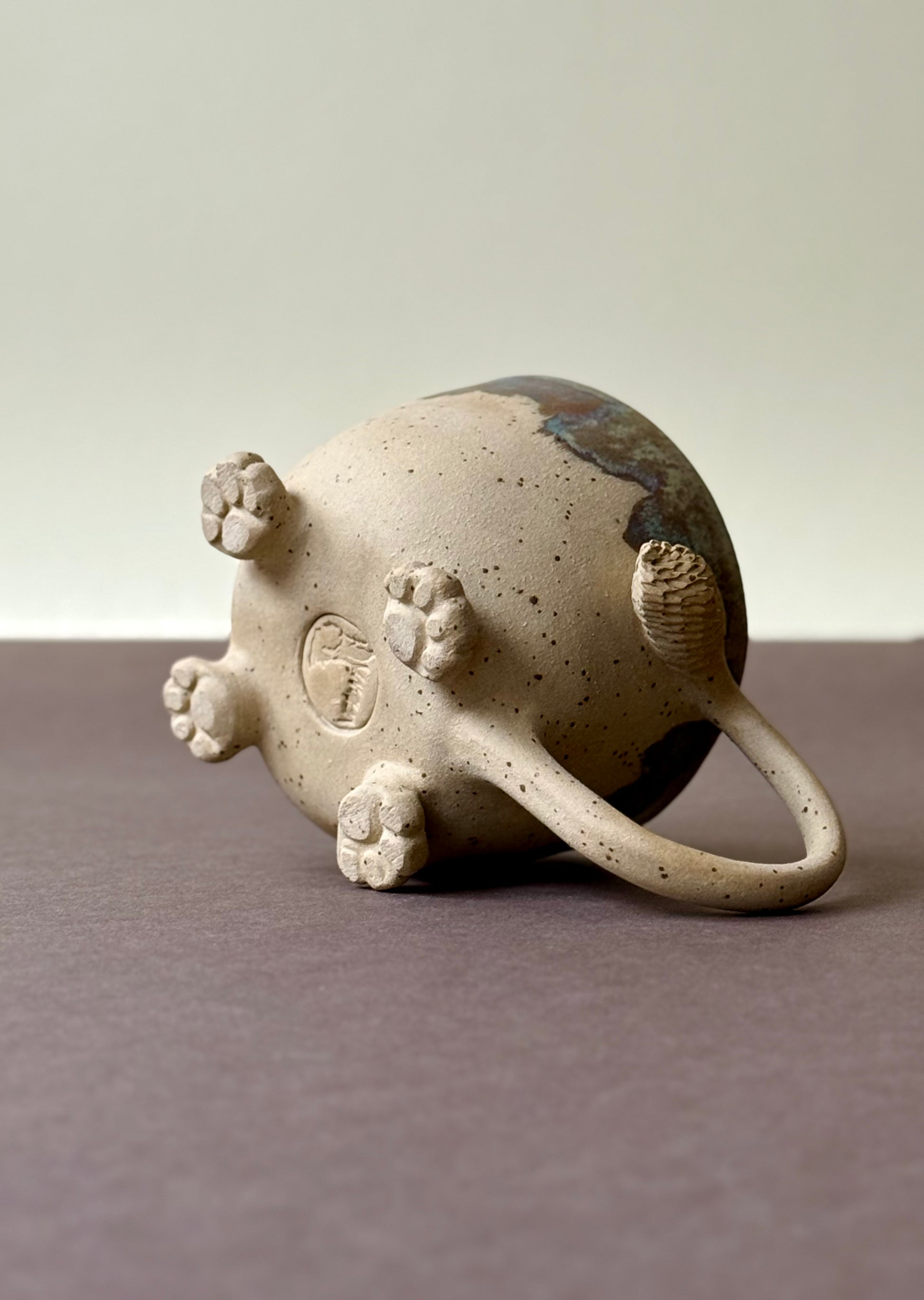 Beige cups from the "Tailed" collection. With cute paws and a convenient tail-handle. Made of stone mass with brown inclusions, partially covered with glaze.