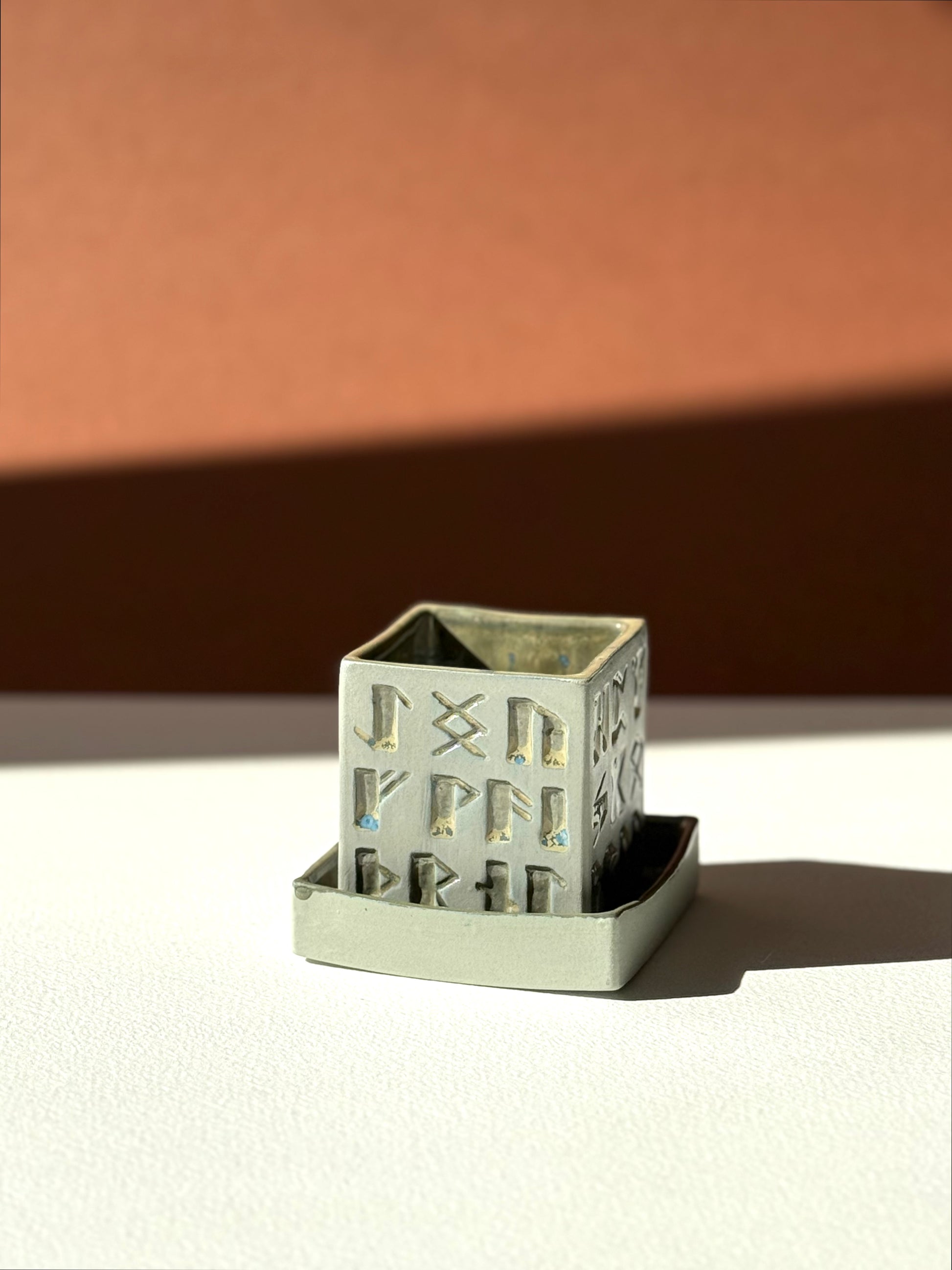 Маленькие горшки «Футарк» изготовлены из тонированной керамики. Частичное покрытие глазурью обеспечивает аэрацию корней растений и улучшает дренаж. Эта серия была специально создана для суккулентов и кактусов с учётом их предпочтений.