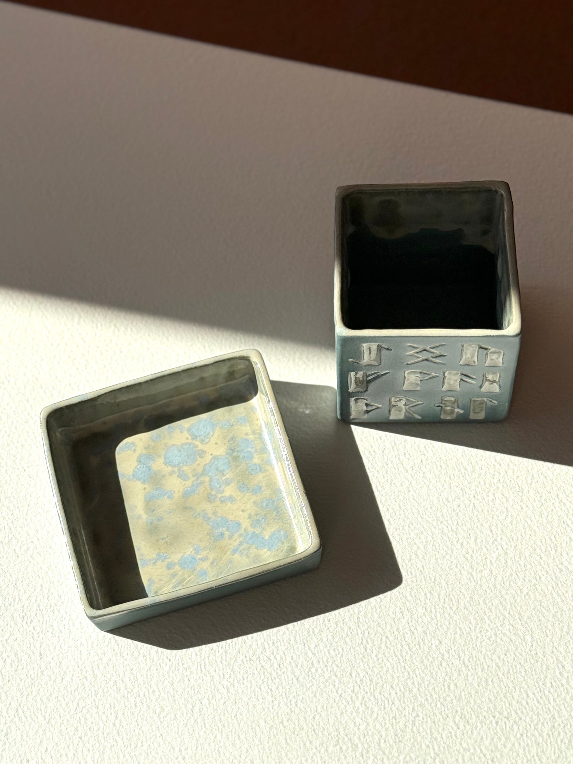 Горшок «Футарк» пастельно-голубого цвета. Частично покрыт кристаллической глазурью.