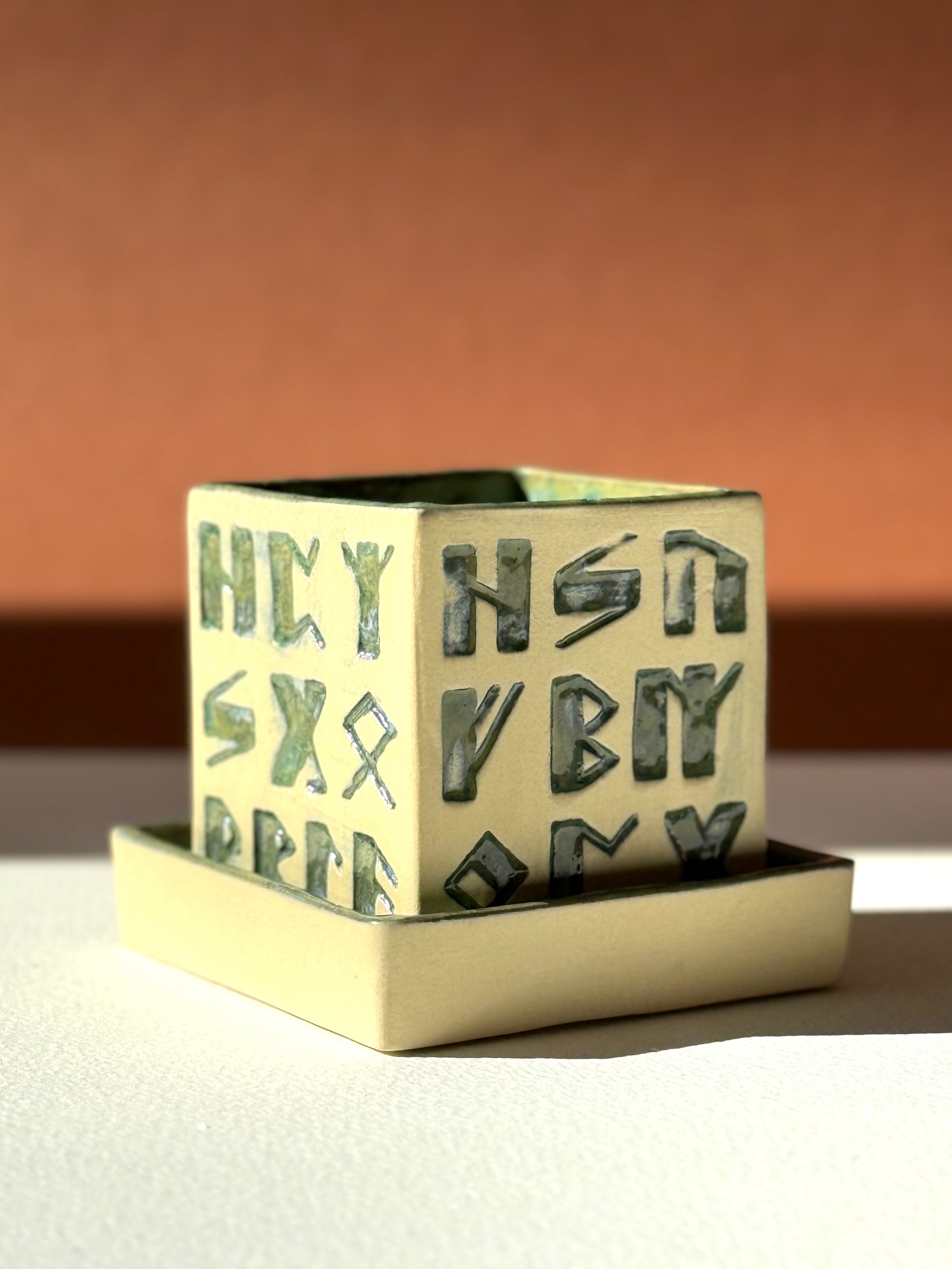 Маленькие горшки «Футарк» изготовлены из тонированной керамики. Частичное покрытие глазурью обеспечивает аэрацию корней растений и улучшает дренаж. Эта серия была специально создана для суккулентов и кактусов с учётом их предпочтений.