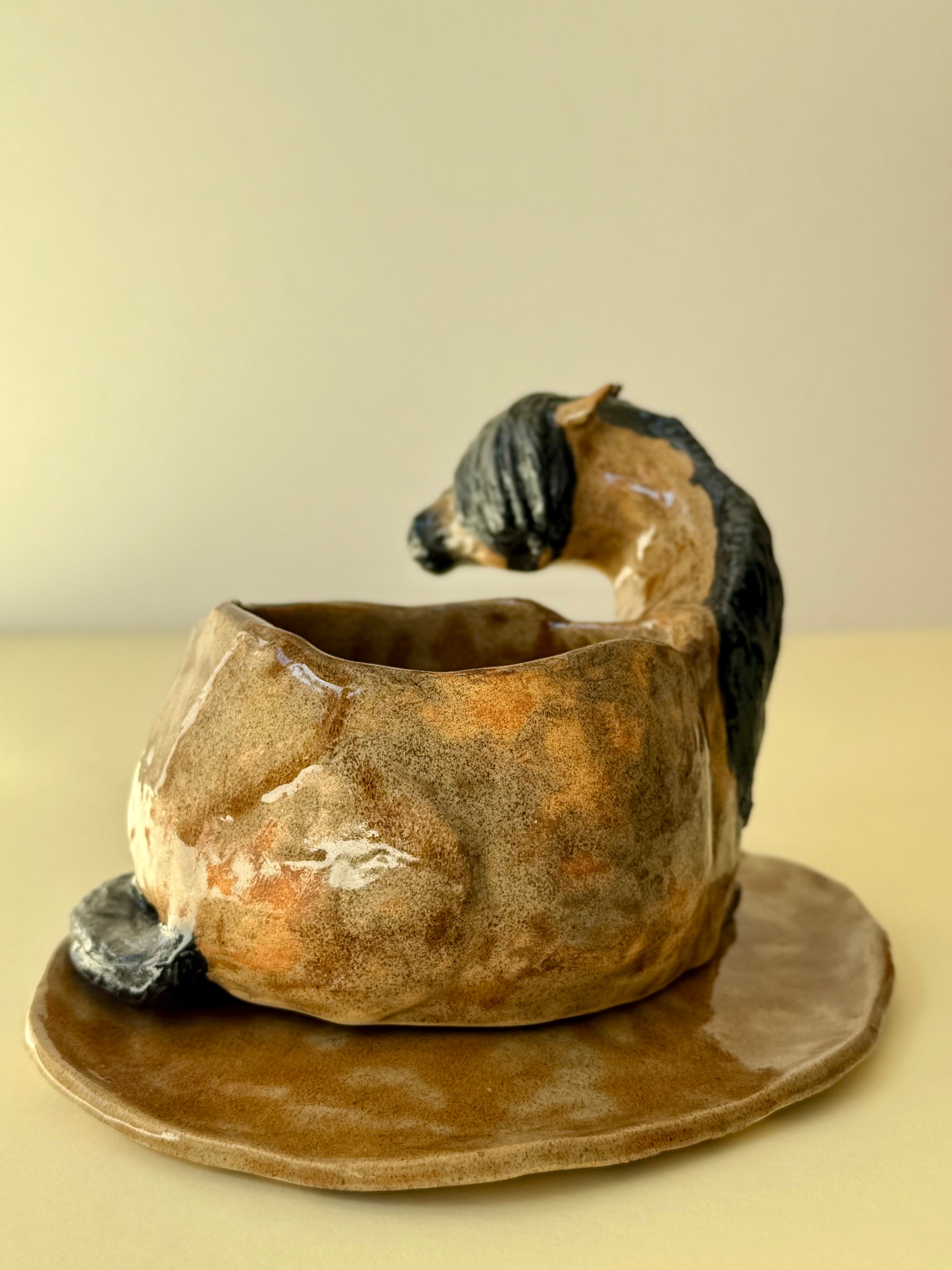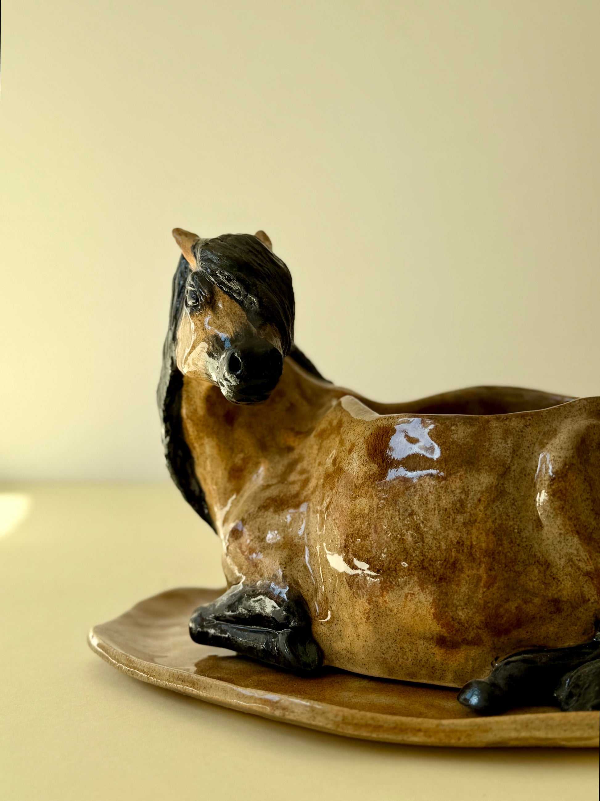 This plant pot is made of stoneware and completely coated with a clear glaze. Pots made of this material retain moisture and temperature well, without overheating in the sun. The pot has a drainage hole and a tray.