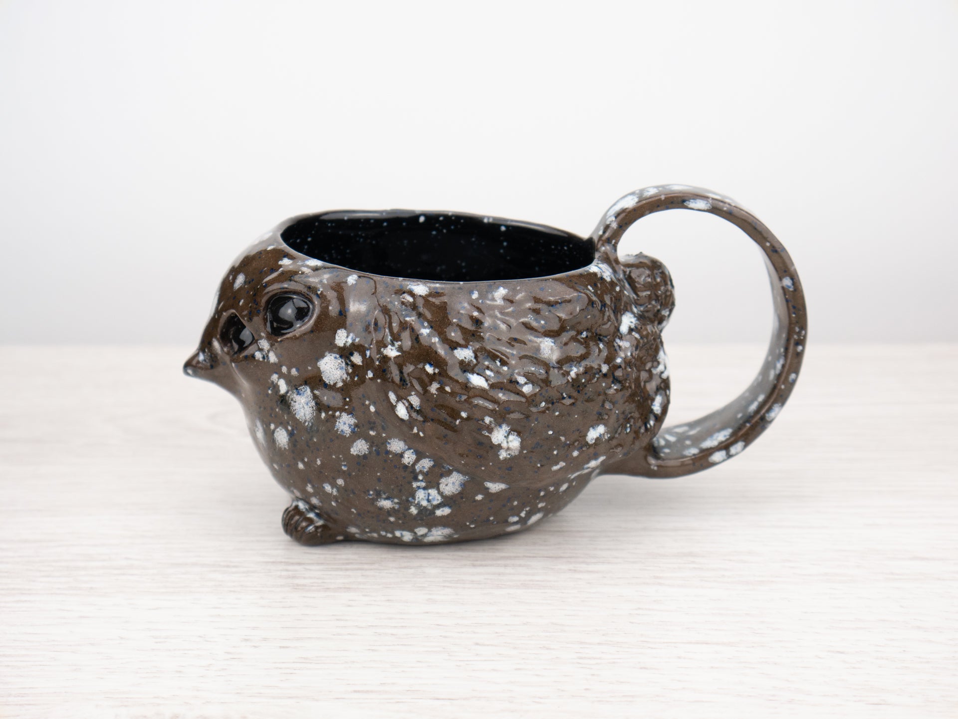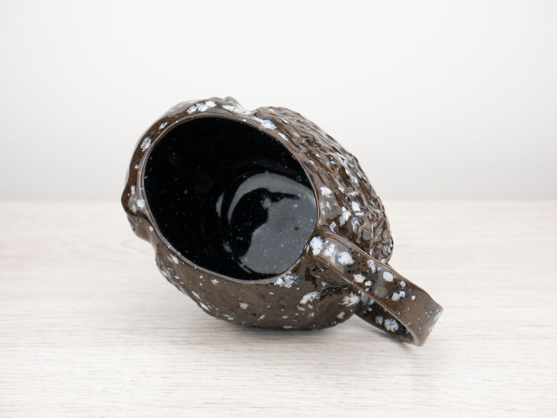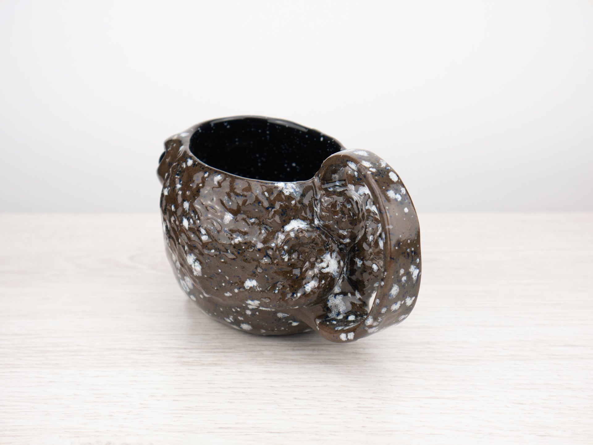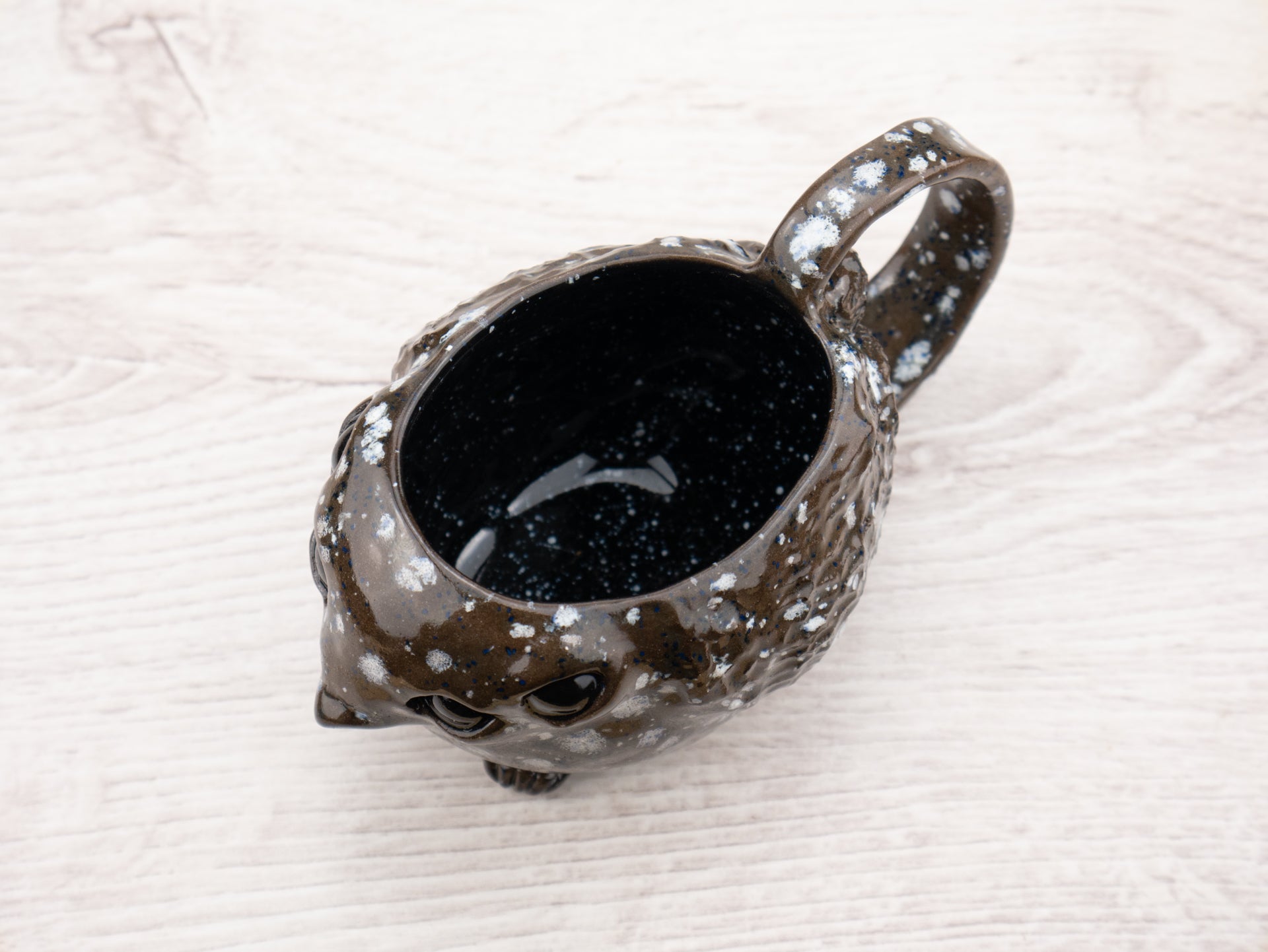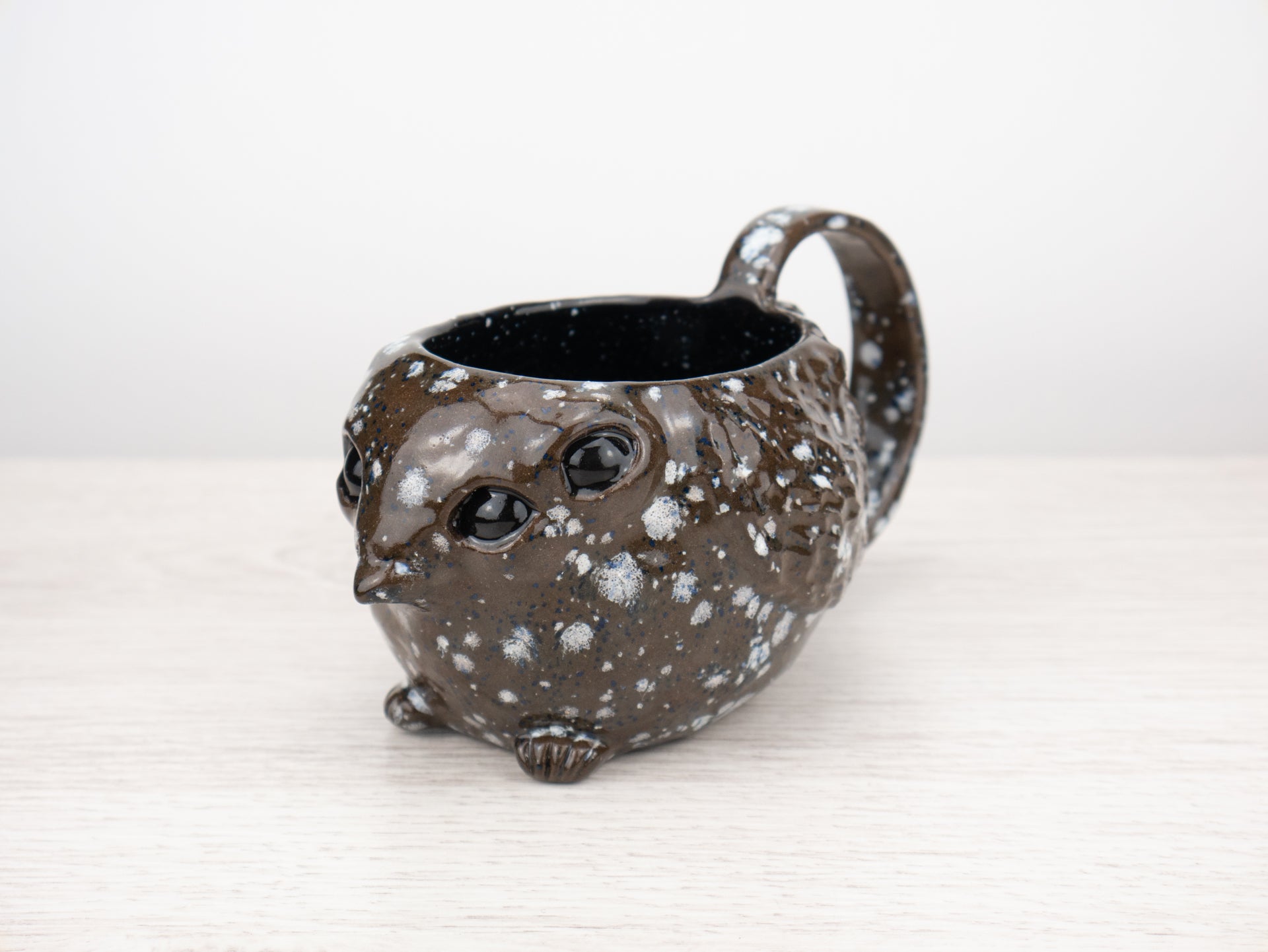A cup from the "Monsters" series. A fabulous bird, the Many-Eyed One. Sculpted from stone mass and covered with a crystalline glaze.