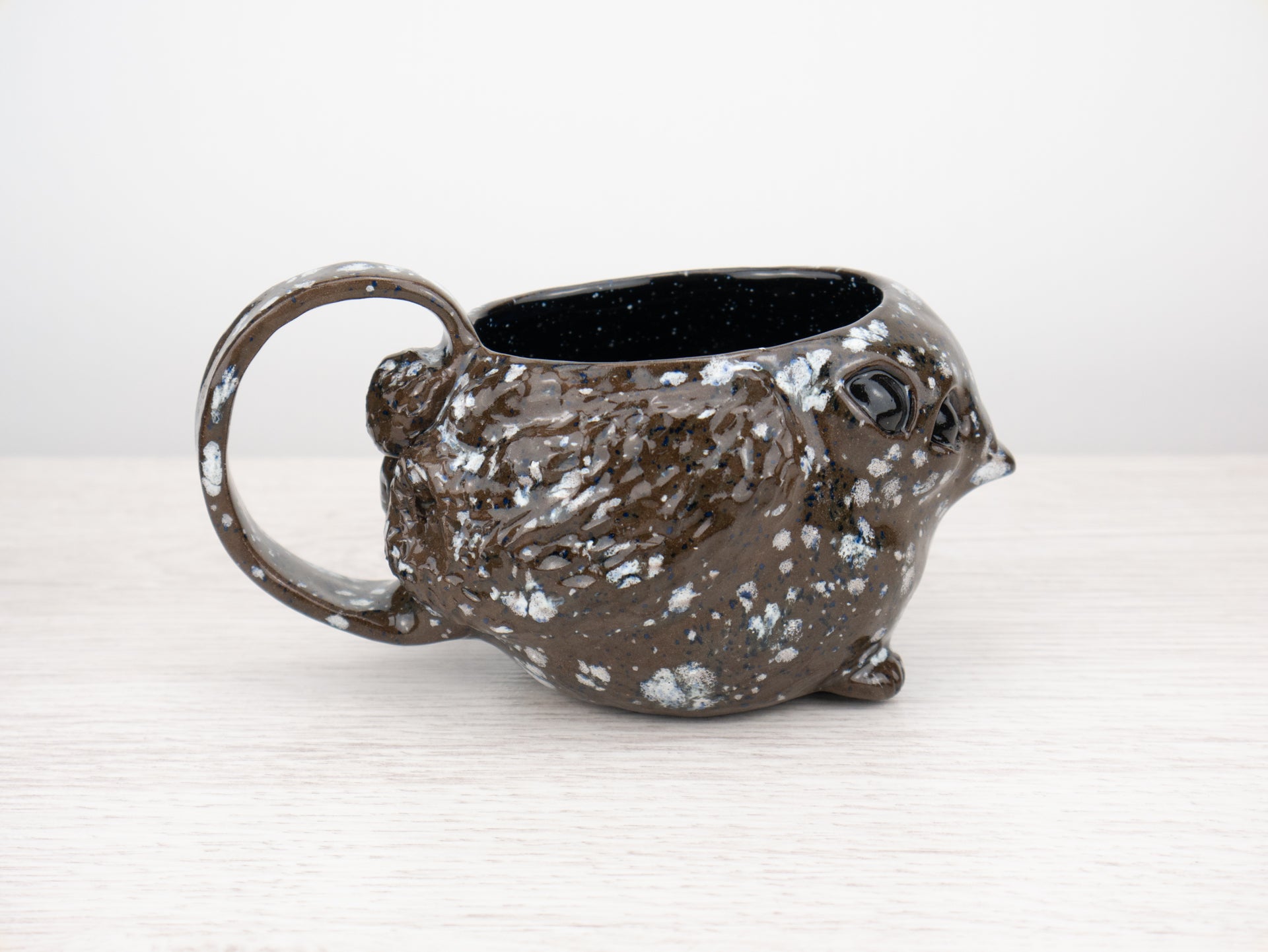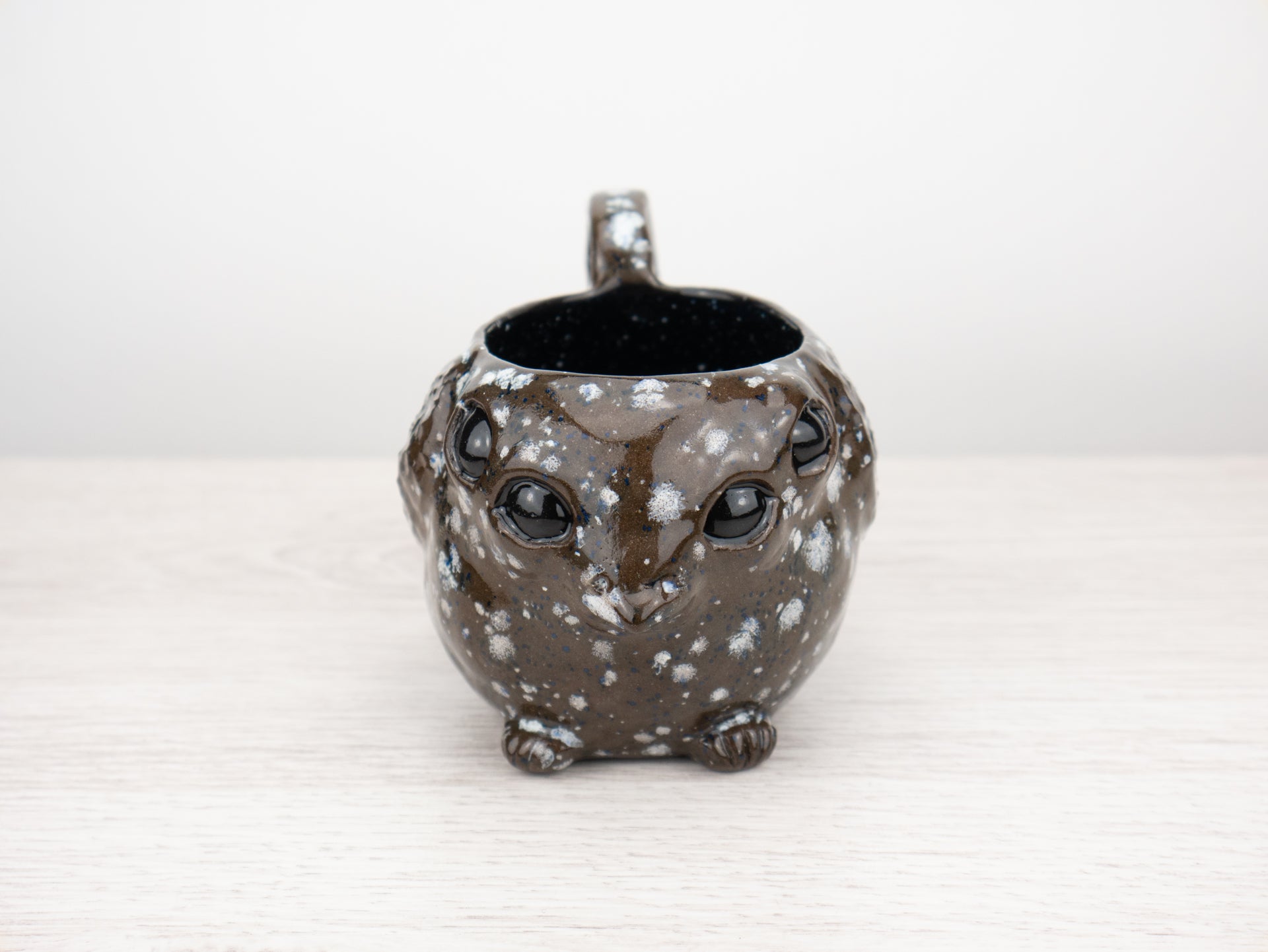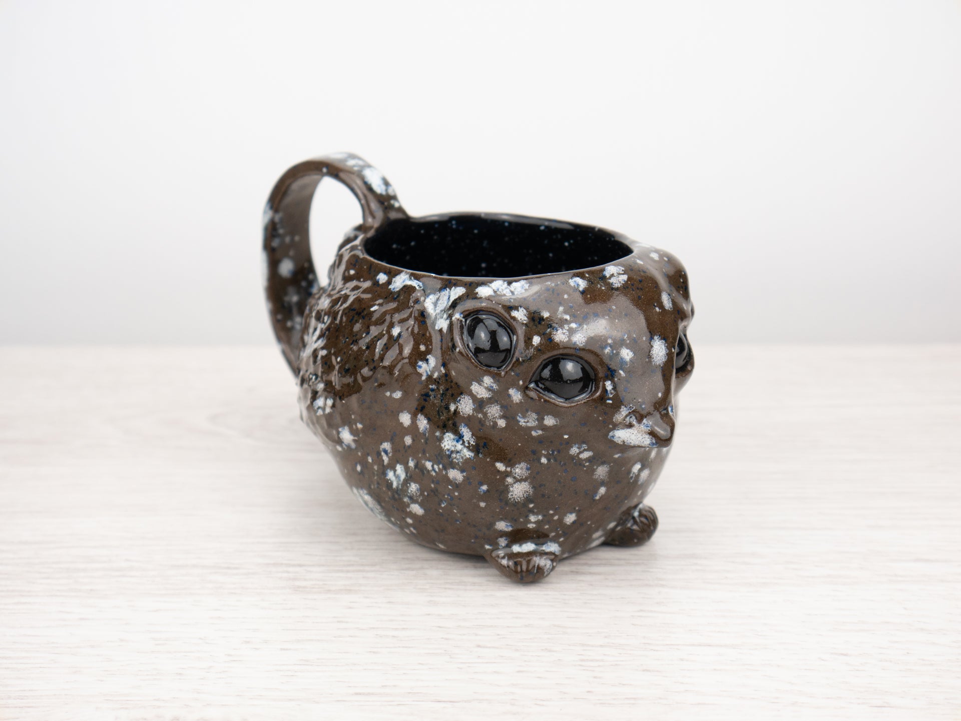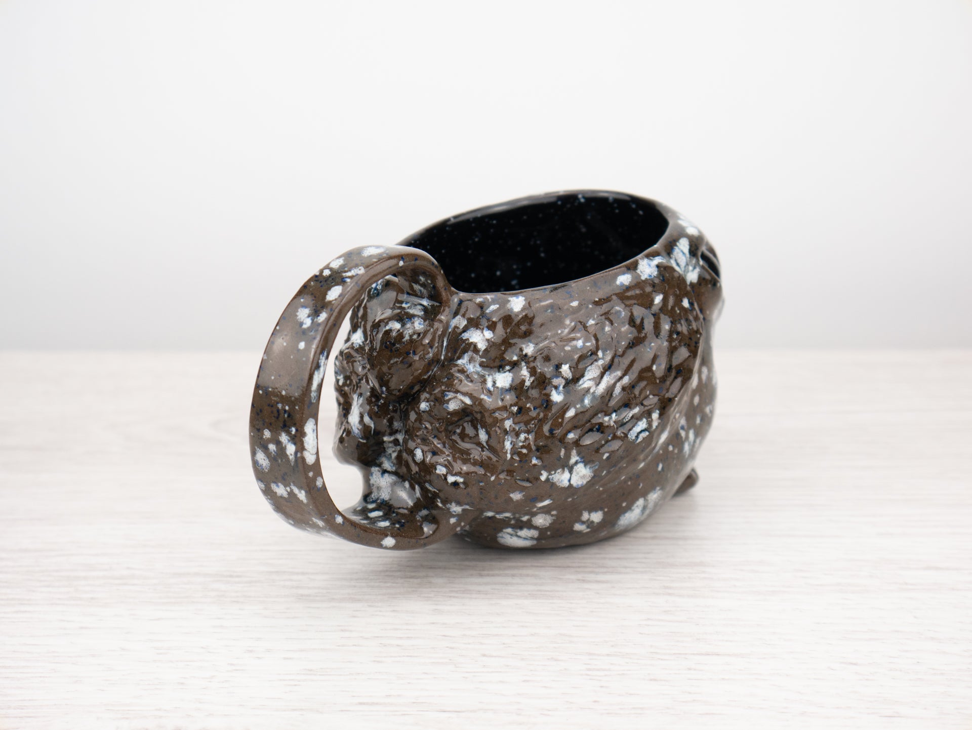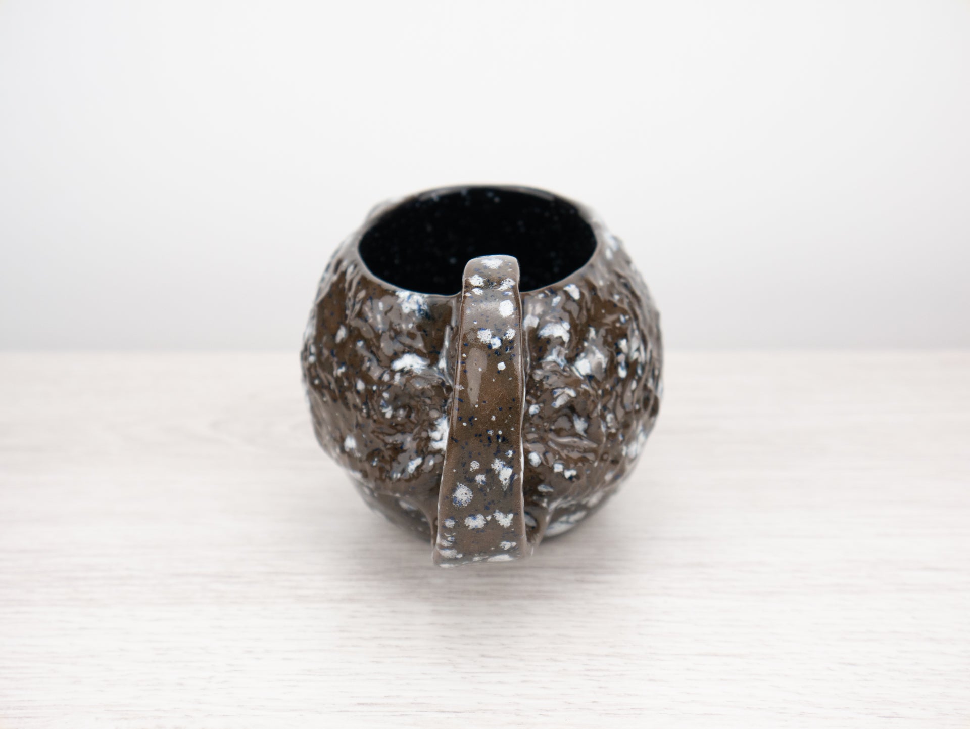 A cup from the "Monsters" series. A fabulous bird, the Many-Eyed One. Sculpted from stone mass and covered with a crystalline glaze.