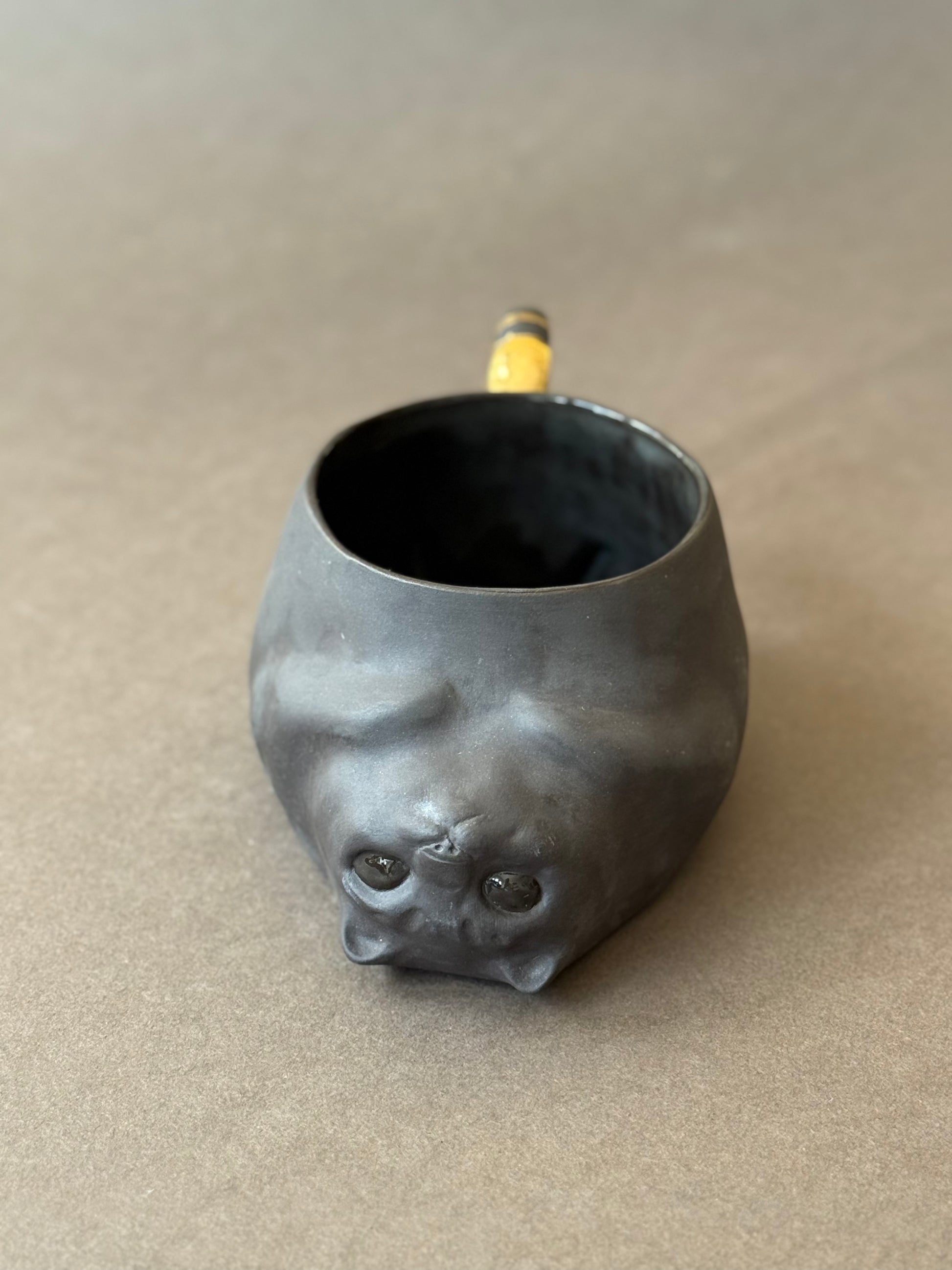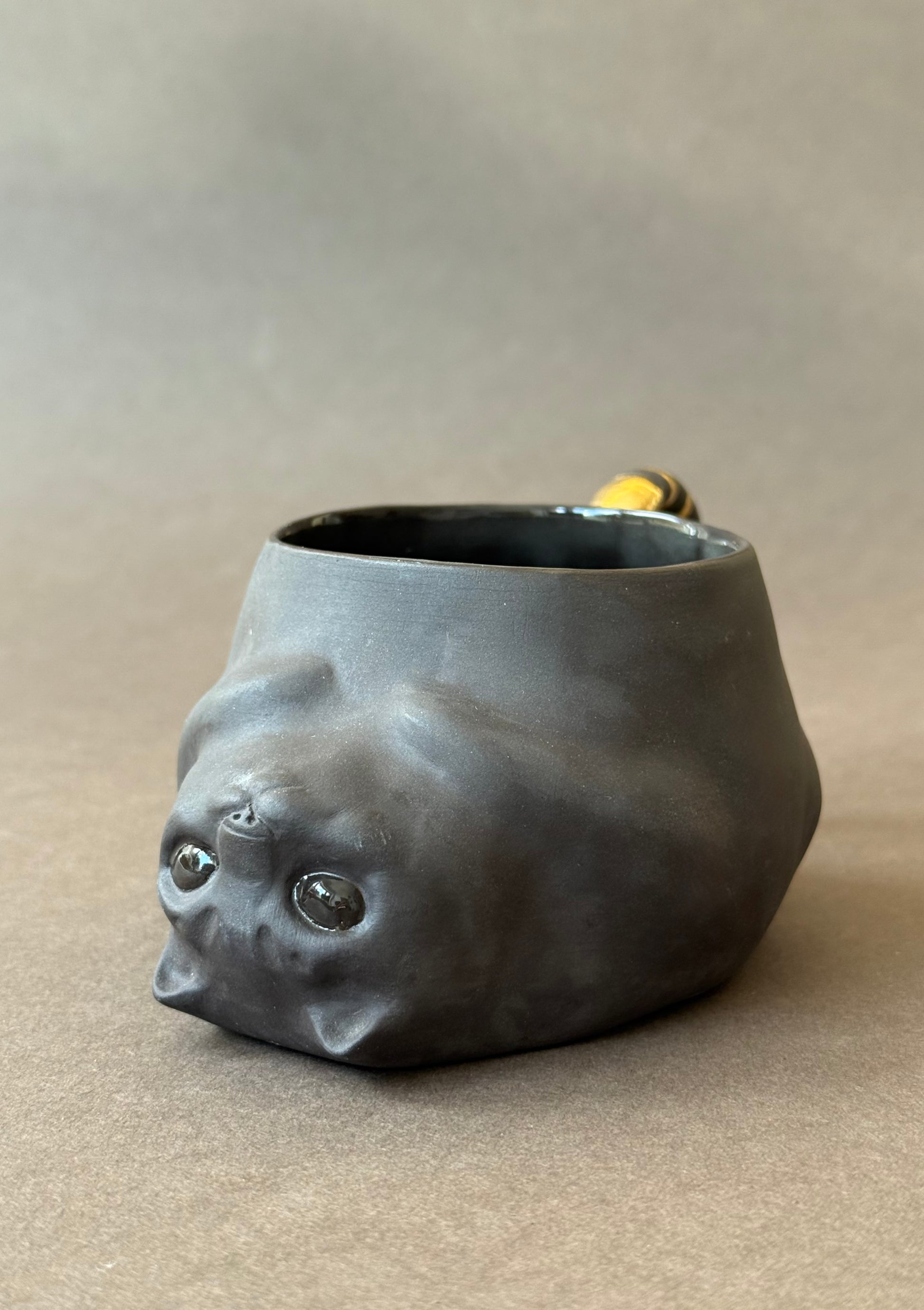 A cat made of tinted semi-porcelain. A continuation of this series in black. In many countries, a black cat is associated with bad luck and misfortune. But this is actually a misconception. Inside every cat is warmth, comfort, and a little motor. And a black cat has twice as much, as it absorbs even more solar energy!