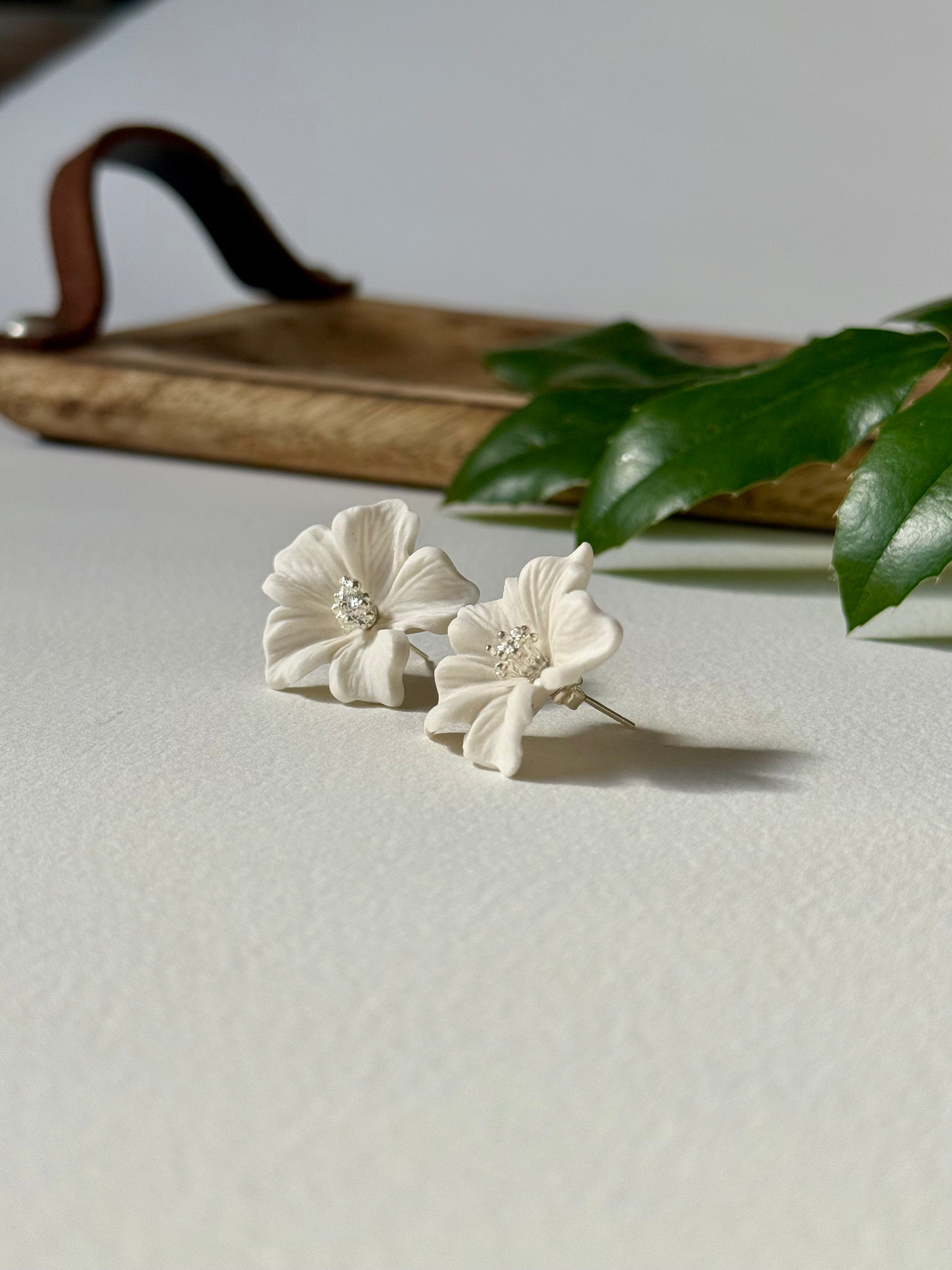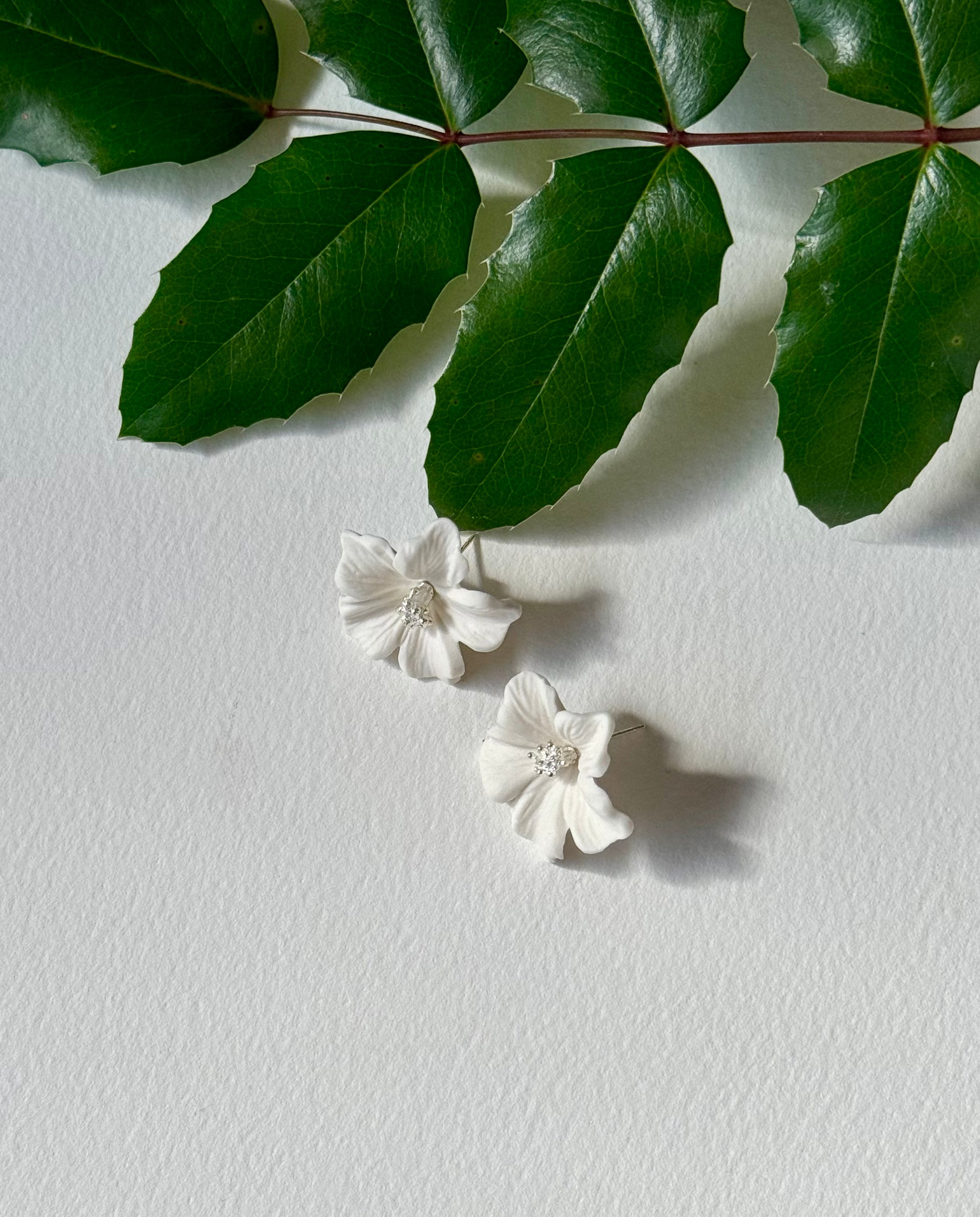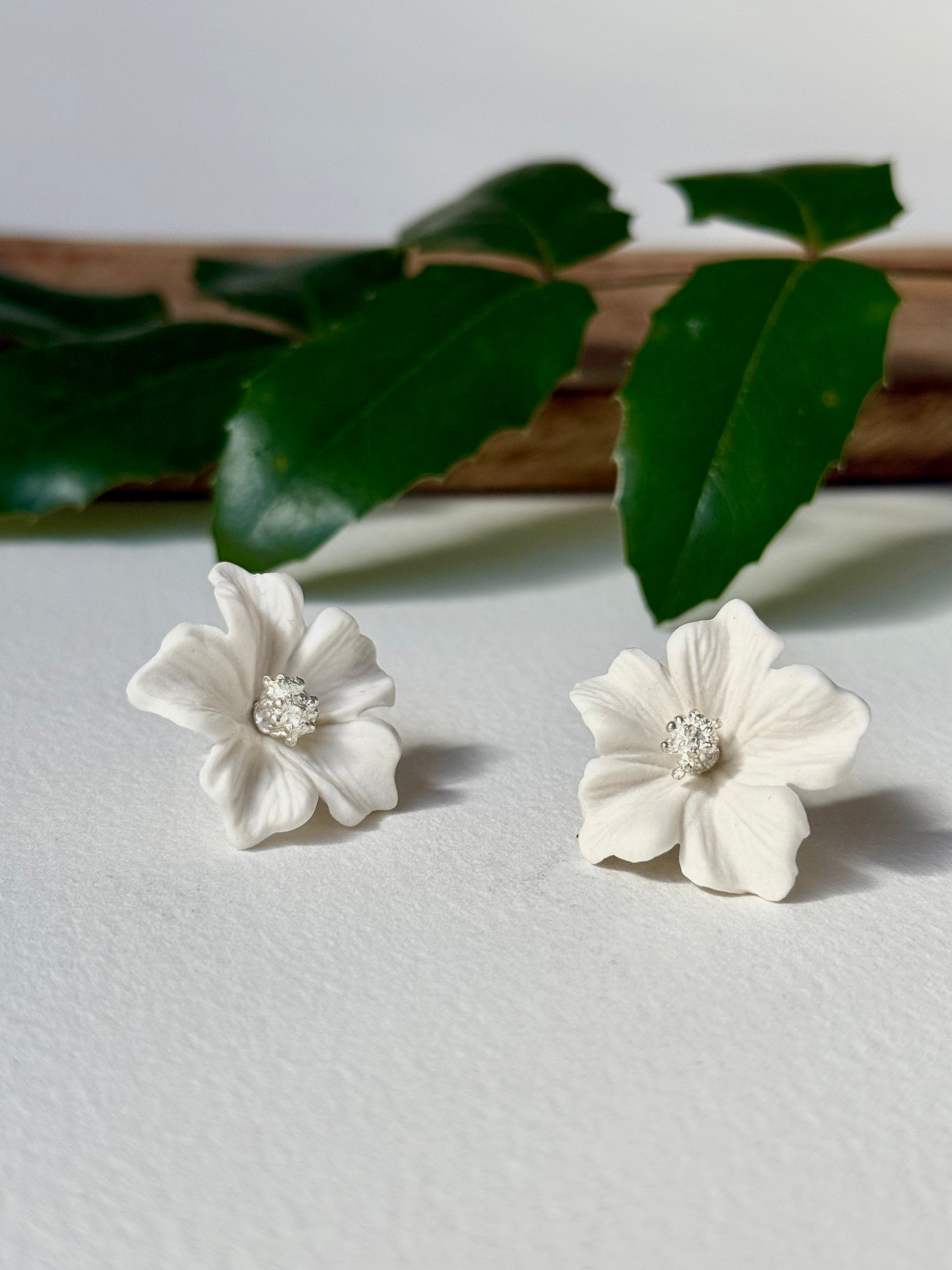 Earrings-studs Bells. The flower is made of porcelain, fittings - 925 silver. The central part of the flower is brass. The weight of each earring is 3,1 g, size 28x28 mm.