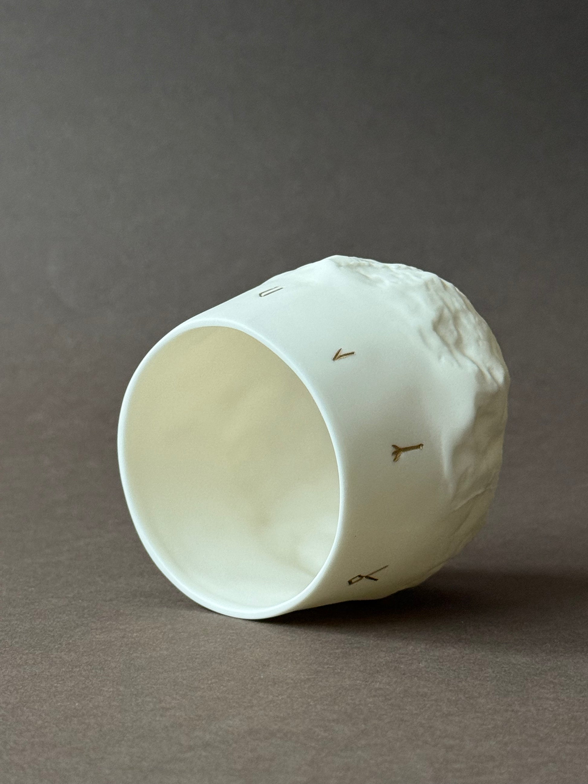 Made of English Parian porcelain, without the use of glaze. Runes are covered with a 12% gold preparation. Intended for cold drinks.